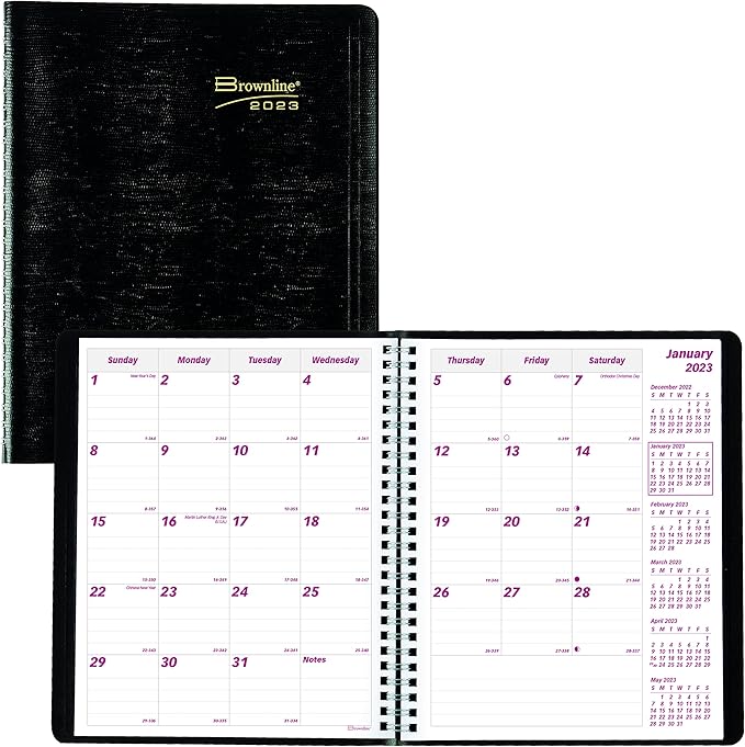 Brownline Essential Collection 14-Month Ruled Monthly Planner, 8.88 x 7.13, Black Cover, 14-Month (Dec to Jan): 2022 to 2024
