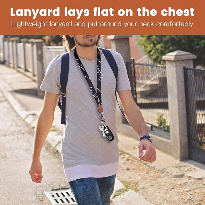 • COMFORTABLE TO WEAR: Our goal was to create a keychain lanyard that was comfortable to wear and functional, and this neck lanyard is ideal for those who want to carry essentials on their body without having to hold them in their hands at all times. A lightweight lanyards keep you comfortable all day at work or any activity.
