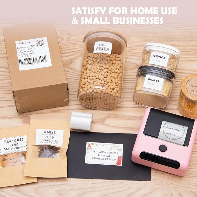 - 【Widely Used】Phomemo is suitable for product labels, business stickers, handmade goods, bakery stickers, wedding stickers, or mail , envelope seals. containers, supply cabinets, storage boxes, personal items, crafts, gifts, files and more for identify items and quickly organize. It can be used not only at home, but also widely used in offices, schools, supermarkets, retail stores, jewelry stores, libraries, pharmacies, etc.