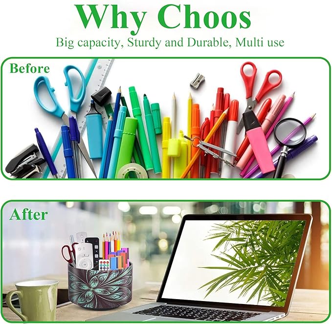 - ✎360° Revolving Design: You can freely rotate the pen holder steadily left and right,unique spinning base design allows easy access to items from any directions.The non-slip pads on the bottom keep it stay in place when rotating.