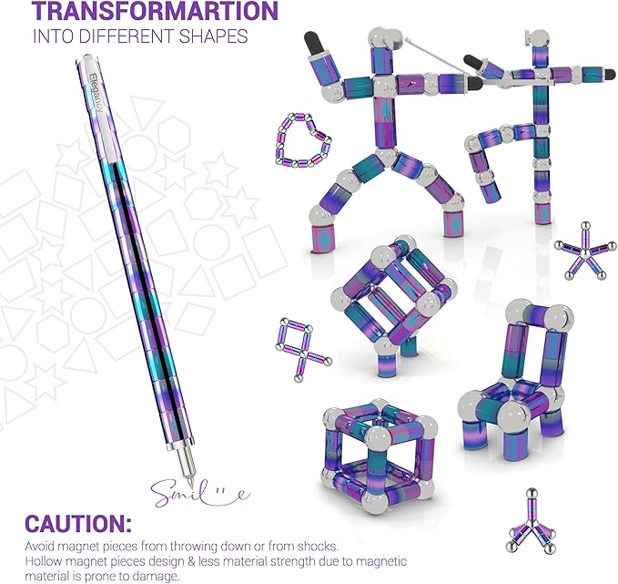 - 🖋️ DEFORMABLE WRITING PEN - This anxiety pen is not just a pen, also be finger fidget toys. This Magnet Pen can be rotated and transformed into a variety of creative, free combination, multiple and diverse plays. This magnetic pen can change shape conforming to your images anytime, anywhere, like swords, robots, monsters, etc. It is a good magnet toy to pass the time.
