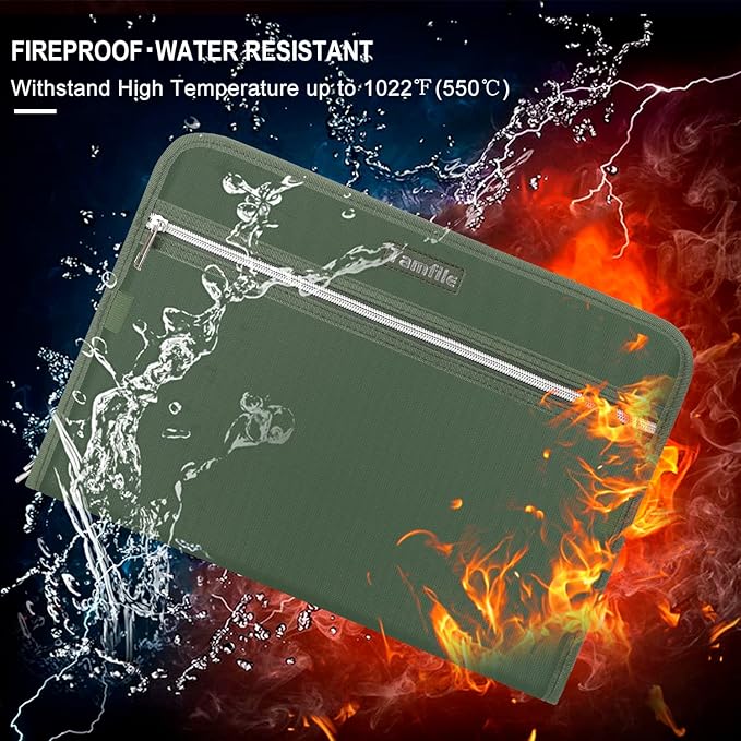 - [Fireproof and waterproof]: In the document organizer of fire, extend the time that the flame burns to the file, and buy time for rescue. In rainy conditions, you don't have to worry about the file being wet by the rain. It cannot be completely fireproof and waterproof. Please do not immerse the folder in the water. Water will enter the interior through the gap.