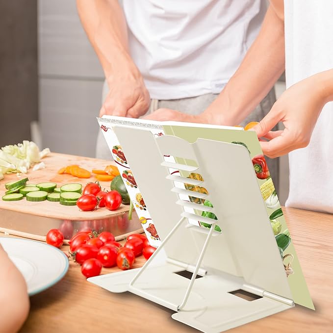 - 【Book Stand for Reading】Length-8.3in, Width-6.3in There are 4 skid-proof pad glued at the bottom of the book display stand on kitchen top desktop countertop or other flat and smooth surface while holding without sliding off or falling down