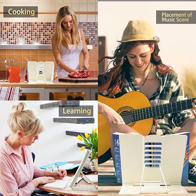 - 【Adjustable Book Holder】 Book Holder have six reading positions,The multiple notches on the backrest can adjust its height and angle.Adjust the height between the eyes and reading books or documents well