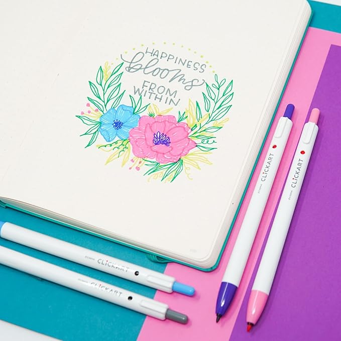 - Clean white barrel houses the retractable ink, available with a simple click of the color-coded plunge