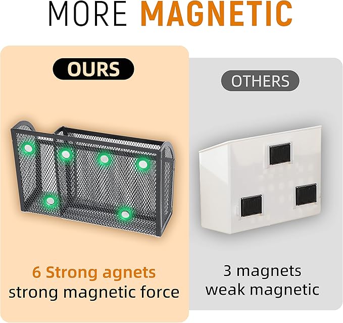 - [Multifunctional Magnetic Fridge Organizer] This magnetic locker organizer is specially designed for various scenarios. Can be used as a magnetic pencil holder cup, magnetic marker holder, magnetic school locker organizer, or magnetic pencil holder basket. Perfect for home, kitchen, office, workplace, school, restaurant, etc.