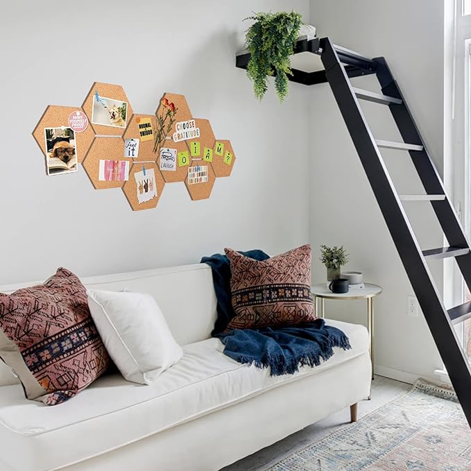 10 Pack Cork Bulletin Board Hexagon - Decorative Display Boards, 1/2" Thick Self-Adhesive Cork Board Tiles for Home Office Decor, School Message Board (10 Pcs)