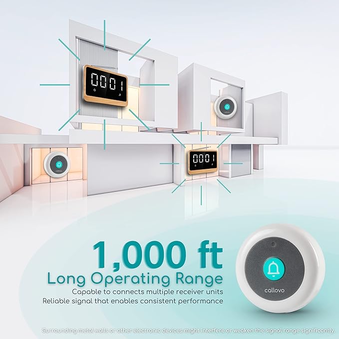 - SMART RELIABLE NURSE CALL BED ALARM SYSTEM: With smart caregiving technology, unlike the other call light system, the distance between caregiver call button and central receiver unit can reach up to 1,000 ft signal range in open area.