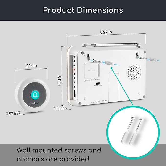 - COMES WITH ALL YOU NEED: CALLOVO wireless calling system pager kit includes a central receiver unit, 10 wireless call button buzzers, caregiver lanyard straps, batteries, adhesive tapes, mount brackets that allows call bell to be fixed on wall/headboard of bed. Smart bed alarm system for elderly at home. Adult monitors for elderly central receiver unit can be fixed on wall or placed on desk with clock display at reception or nurse station for emergency.