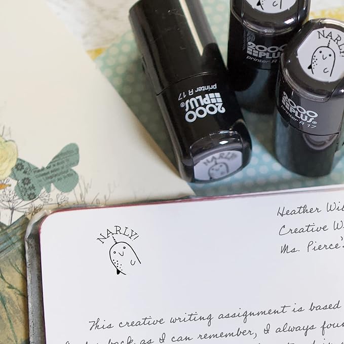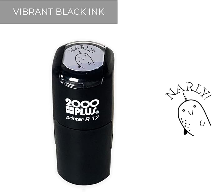 - Includes: One small round self-inking narwhal themed black ink stamp.