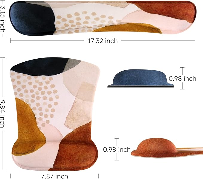 - Ergonomic Design: The curved design of these two wrist rests fits perfectly on the wrist. Provide soft support to relieve the pressure, fatigue and pain of your wrist