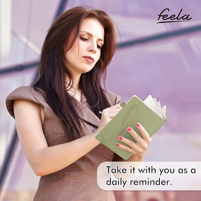 feela 5 Pack Notebooks Journals Bulk, Hardcover Classic Ruled Lined Journals with Pen Holder for Women Girls School Business Supplies, with 5 Black Pens, 120 GSM, 5.1”x8.3”, A5, Avocado Green