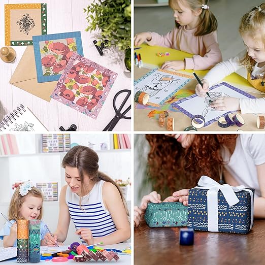 - [Versatile Use] - Colorful washi tape is versatile and can be used in a variety of scenarios, decorations, parties, holidays, and birthdays. The colorful masking tape can be used to decorate gift wrapping, diy crafts, scrapbooking supplies, bullet journaling supplies