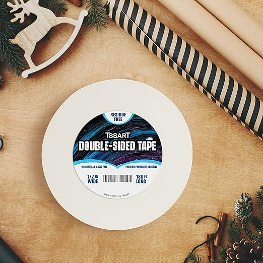 Ultra-Thin Permanent Double-Sided Tape - Double Sided Adhesive Sticky Tape for Arts, Crafts, Photography, Scrapbooking, Tear-by-Hand, Paper Backing - Acid Free 1/2Inch Wide 180FT Long