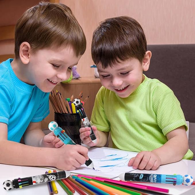 Multicolor Ballpoint Pen 0.7 mm, 10-in-1 Colored Pens Fine Point Retractable World Cup Soccer Ballpoint Pens for Office School Supplies Students Kids Gifts, 6 Pack