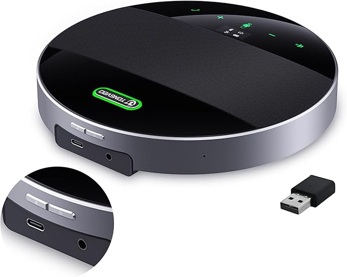 - VARIOUS CONNECTION MODES & STRONG COMPATIBILITY. TONGVEO Conference speakerphone could be paired via Bluetooth or Wireless or USB-C or headphone cable to your laptop or phone. Conference Speakerphone is compatible with Skype, Zoom, WebEx, Goto Meeting, and Facetime.