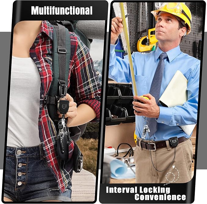 ELV Heavy Duty Retractable Keychain with Interval Locking, Belt Clip and Carabiner, ID Badge Key Reel, Retractable Badge Holder with 31” Dyneema Cord, Key Ring, Lobster Claw Clasp and Phone Tethers
