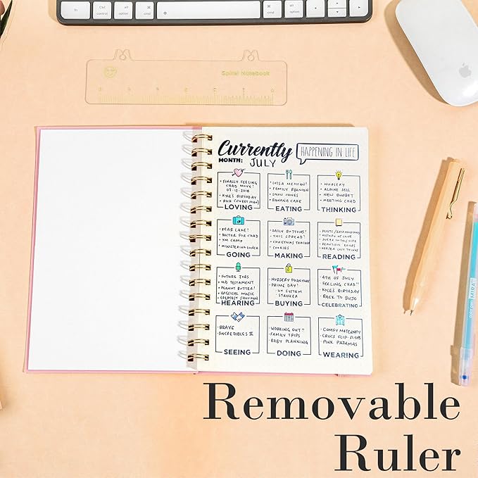 - Removable Ruler and Pocket--The bullet dotted journal has many useful features,Elastic band keep the cover from opening, saving space when you put it in your bag.Internal pockets store small cards and important note-taking notes.Removable ruler can help you measure and chart.