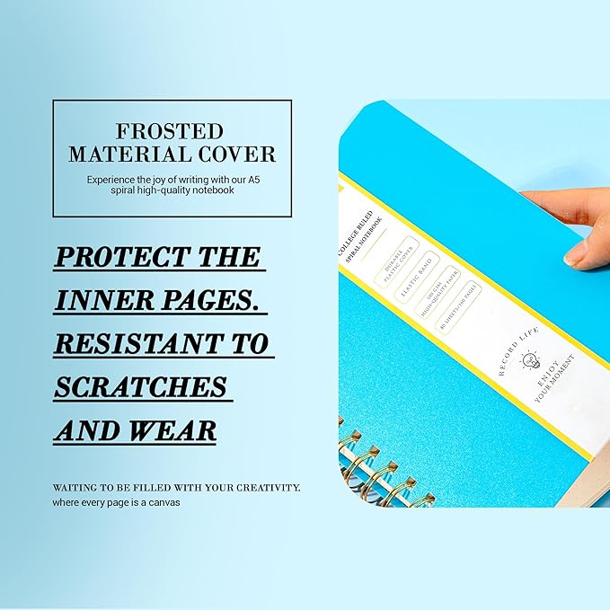 - Plastic Hardcover Spiral Notebook--The cover of spiral journal is made of durable plastic material and minimalistic colors.The sturdy and water-resistant cover protects interior pages while journaling or traveling.At the same time,this spiral bound journal is stain-resistant,you can easily wipe off the stains on the cover.