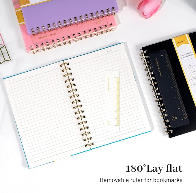 - A5 Spiral Notebook--The small spiral notebook is A5 size,5.7"x8.5".Elastic band keep the cover from opening, saving space when you put it in your bag.Internal pockets store small cards and important note-taking notes.180°lay flat,It's convenient for you to write anywhere.