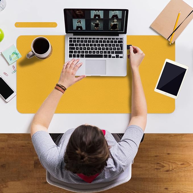 Boutilon Leather Desk Pad 30" x14",Non-Slip Mouse Pad,Office Desk Mat,Waterprooft PU Leather Desk Blotter,Desk Pad Protector,Desk Writing Pad for Home Office Decor (M-Yellow)