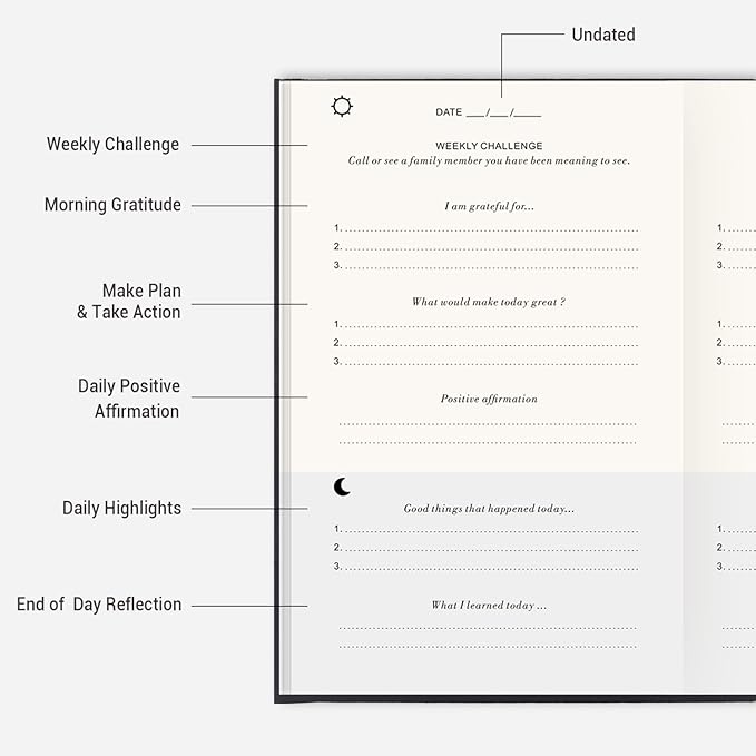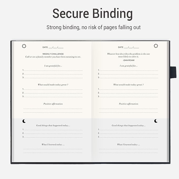 - Undated & Strong Binding- The inside of the daily journal is undated, which means you can start whenever you're ready! And it has thick pages and strong bindings, with no risk of pages falling out!