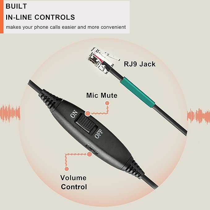 Phone Headset with Microphone Noise Cancelling, Call Center Telephone Headset with RJ9 Jack, Work for Avaya 1408 9508 1416 Shoretel 230 480 Mitel 5220 Polycom NEC Allworx Zultys Aastra Landline Phones