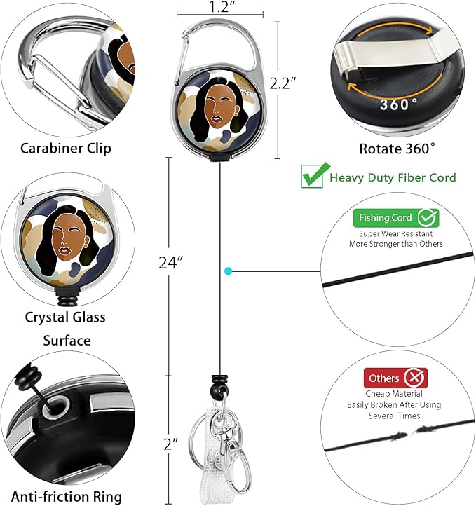 - Special Design: It's time to throw away the dull badge holders and badge reels. They are printed with Vintage Art face patterns, which are artistic and stylish. If you want to change your tedious life, you can start with this colorful and unique badge holder, which comes with a cute lanyard and a lovely retractable badge reel