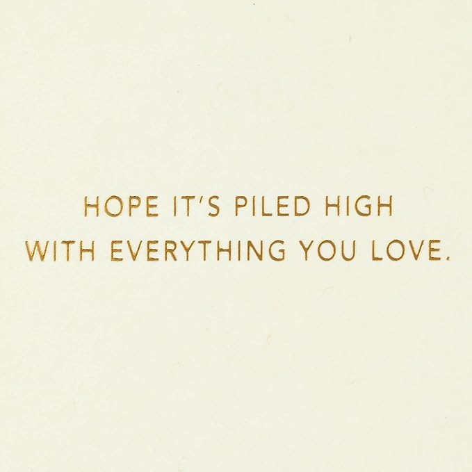 - Cover features an embellished triple cheeseburger design with a birthday candle on top. Message reads: "Happy birthday." Inside reads: "Hope it's piled high with everything you love."