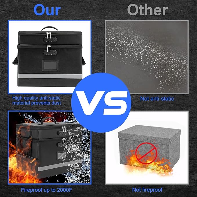 - HIGH QUALITY FIREPROOF FILING BOX: Made of double-layered non-itchy silicone coated fiberglass, EXLIFBAG file organizer is fireproof and waterproof to protect your document at most in bad condition like fire, flood and wet weather. The design of High-quality 2 way zipper provides great convenience when using. The non-slip pad on the bottom makes the document box more durable and stable.