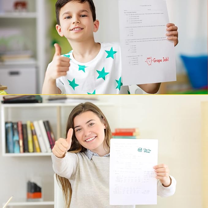 - Meaningful and Delicate Design: our stamps for teachers set comes with 24 kinds of inspirational words and cute patterns, such as [You Are Smart], [Grape Job], [Berry Nice work], etc., which can help you express your evaluation of the student or child who completed the task; The cute cartoon graphics also make these teacher stamps appealing to children
