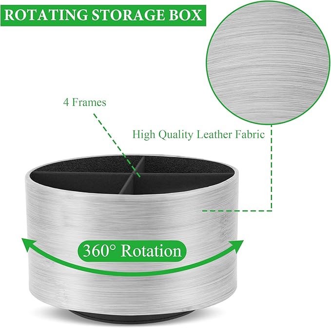 - ✎360° Revolving Design: You can freely rotate the pen holder steadily left and right,unique spinning base design allows easy access to items from any directions.The non-slip pads on the bottom keep it stay in place when rotating.