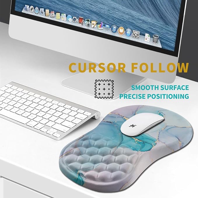 Hokafenle Ergonomic Mouse Pad Wrist Support, Wrist Rest Mousepad for Carpal Tunnel Pain Relief with Integrated Memory Foam Slope Massage Bulge (11.8x7.9 inch,Blue Marble