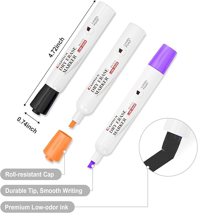 - Low-odor & Non-toxic: Comix dry erase markers are smear-proof, non-toxic, water-based and are made to low-odor, which is safe for use. Comforms to ASTM D-4236