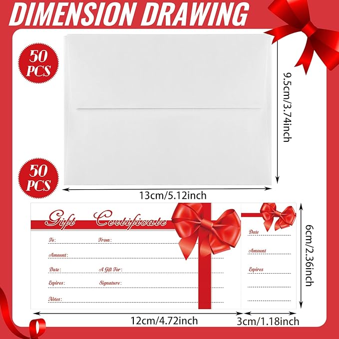 - Product Information: gift certificates for business is made of high impact paper and cardboard material, which can serve you for a long time; The size of certificate card is approx. 12 x 6 cm/ 4.72 x 2.36 inches and the size of detachable stub is approx. 3 x 6 cm/ 1.18 x 2.36 inches