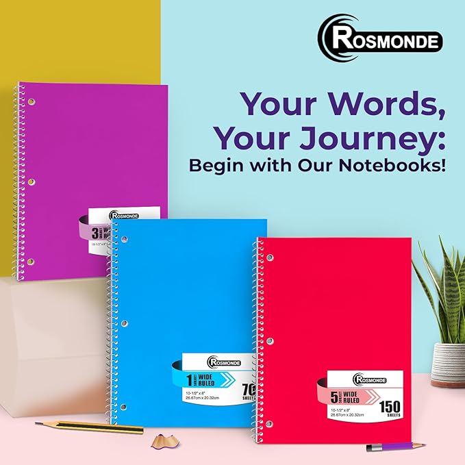 - A CLASSROOM CLASSIC: This 12-pack of 1-subject notebooks helps you identify your subjects at a glance with color-coding efficiency. You can always rely on Rosmonde notebooks to keep up with your busy day! Rosmonde Spiral Notebooks come with high quality sturdy and ink-bleed resistant paper, which makes them the perfect choice for Home, School or Office needs.