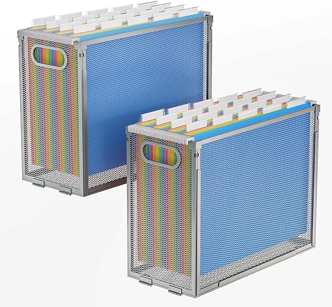 - [Material] The file folder organizer is made of steel and coated with paint. It is sturdy and durable, with smooth edges that won't hurt your hands. The bottom of the hanging file organizer has four soft silicone pads to protect your desktop.