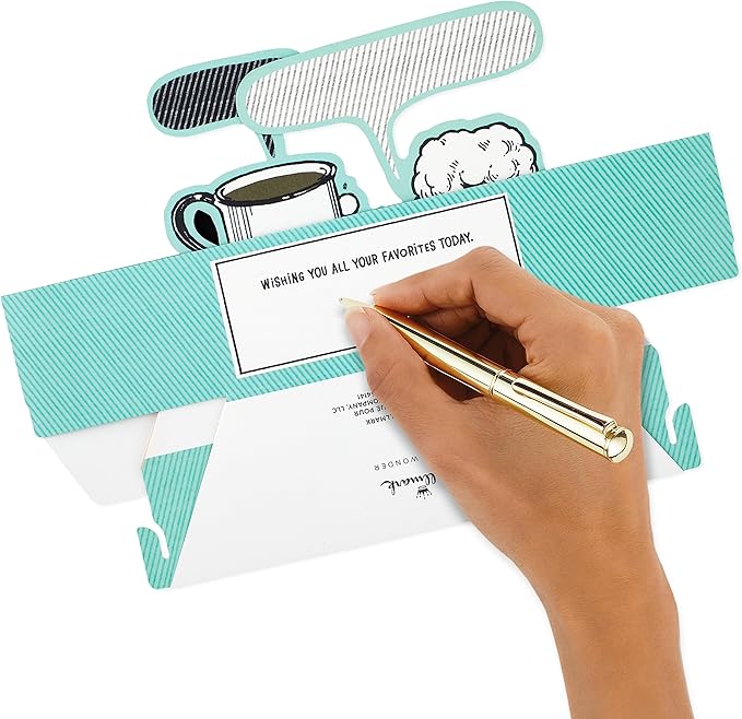 - Back of card reads: "Wishing you all your favorites today," and includes space for a brief message.