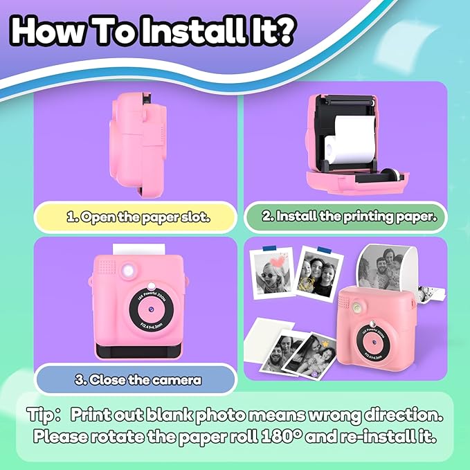 - Safe Print Paper:The material of this children's camera printing paper is safe, without toner, odorless and non-toxic, which is safer and more comfortable for children's skin.It is no BPA