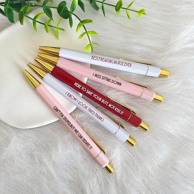- 𝑮𝑰𝑭𝑻: Searching for the perfect gift that truly captures the essence of a nurse's dedication and sense of humor? Look no further than this 5-count set of Jxueych Funny Pens. Each pen is carefully crafted with love and thoughtfulness, making it an ideal present for birthdays, graduations, or just to show appreciation to the nurses in your life. Give them a gift that not only makes them laugh but also brings joy and positivity into their stressful work environment.