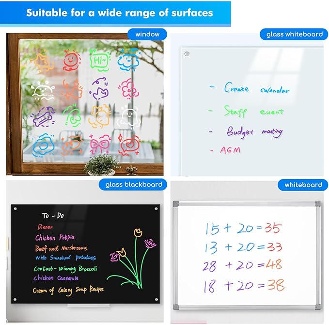 - Safe to Use & Odor Free: Window markers for cars use non-toxic ink, you can enjoy long-lasting and worry-free use, without harmful chemicals; Perfect for Glass Board, Planning Whiteboard, Calendar Boards