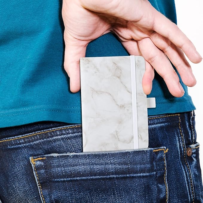 2Pack Pocket Notebook Small Notebook Journal Notebook 4 inches x 5.7 inches 200 Pages Leather Cover With Pen Holder Page Marker Ribbons (Marble)