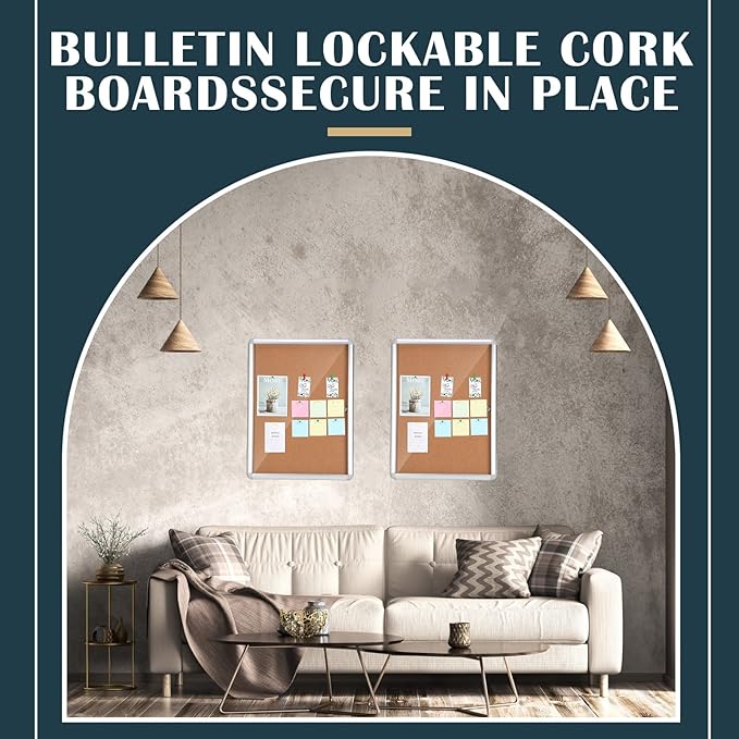 - Package Includes: you will get 2 packs of enclosed bulletin boards, equipped with 4 pcs of safety keys and installation screws, each noticeboard cabinet size is approx. 26 x 20 inches, which can hold 4 pcs of standard A4 size paper, and can also hold other size notice documents, pictures, notes, calendars, menus, reminders, stickers, and more