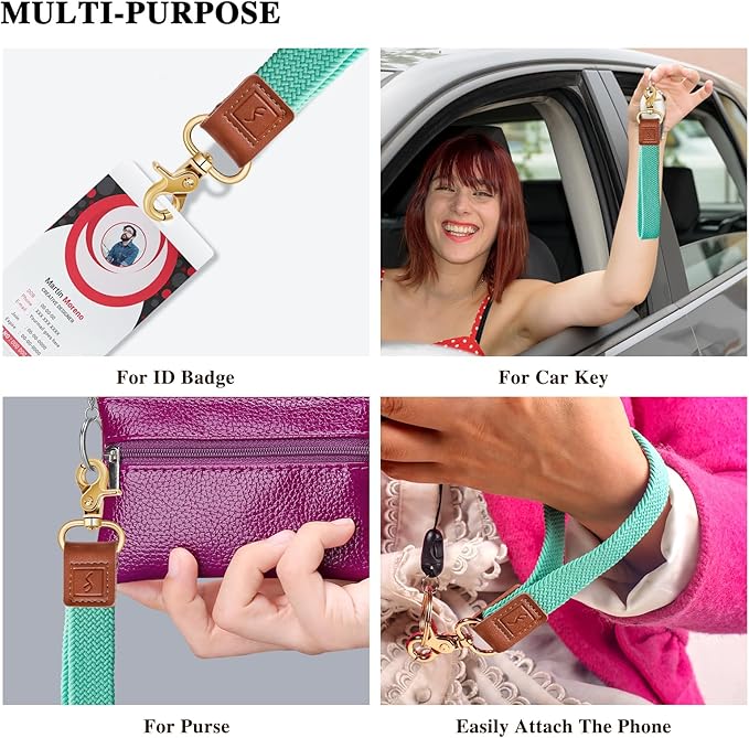 - Excellent Materials: Our wristlet key lanyard is light and strong, not easy to break or fade, and can provide you with a long-lasting user experience.This wristlet keychain for women is made with braided nylon and genuine leather is skin-friendly, has a quality zinc alloy metal wristlet strap key loop make it more solid and sturdy, can maintain long-term use to keep your wrist lanyard for keys, ID badge, or other essentials secure,suitable for long time wear.