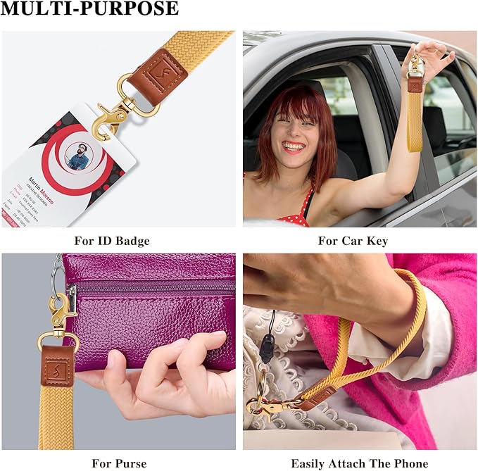 - Excellent Materials: Our wristlet key lanyard is light and strong, not easy to break or fade, and can provide you with a long-lasting user experience.This wristlet keychain for women is made with braided nylon and genuine leather is skin-friendly, has a quality zinc alloy metal wristlet strap key loop make it more solid and sturdy, can maintain long-term use to keep your wrist lanyard for keys, ID badge, or other essentials secure,suitable for long time wear.