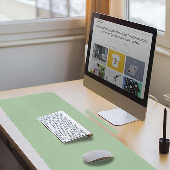 Boutilon Leather Desk Pad 24"x 14" Non-Slip Mouse Pad,Office Desk Mat,Waterprooft PU Leather Desk Blotter,Desk Pad Protector,Desk Writing Pad for Home Office Decor (S-Green)