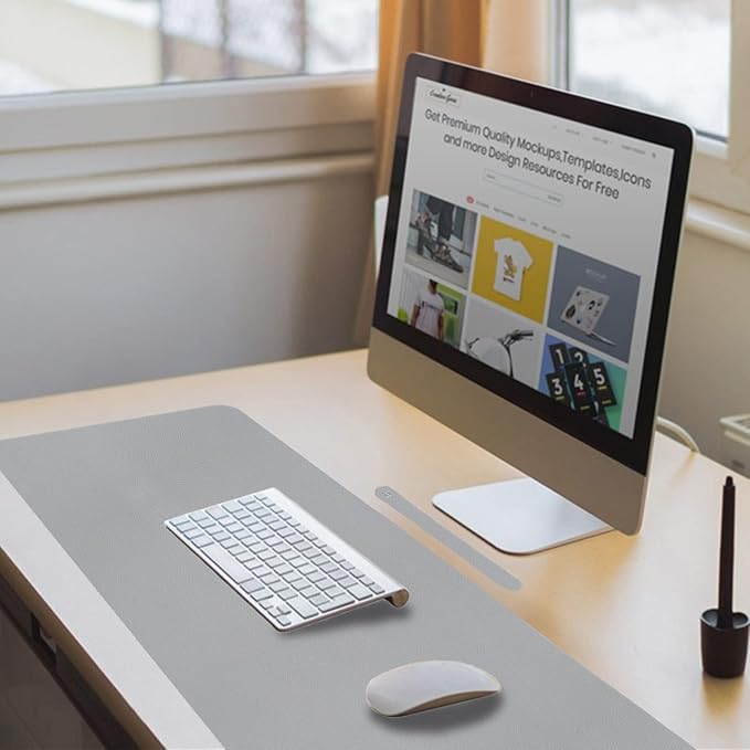 Boutilon Leather Desk Pad 24"x 14" Non-Slip Mouse Pad,Office Desk Mat,Waterprooft PU Leather Desk Blotter,Desk Pad Protector,Desk Writing Pad for Home Office Decor (S-Grey)