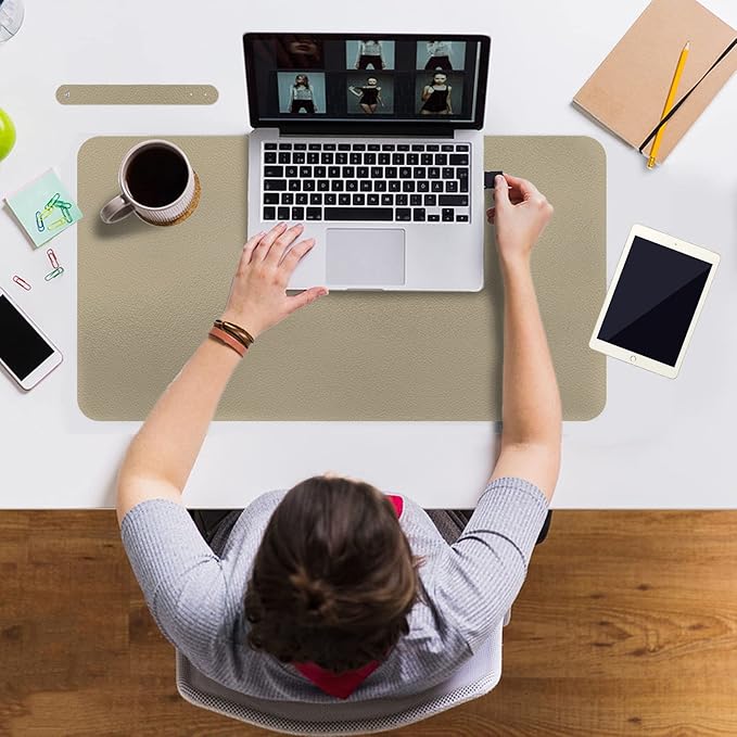 Boutilon Leather Desk Pad 24"x 14" Non-Slip Mouse Pad,Office Desk Mat,Waterprooft PU Leather Desk Blotter,Desk Pad Protector,Desk Writing Pad for Home Office Decor (S-Champagne)