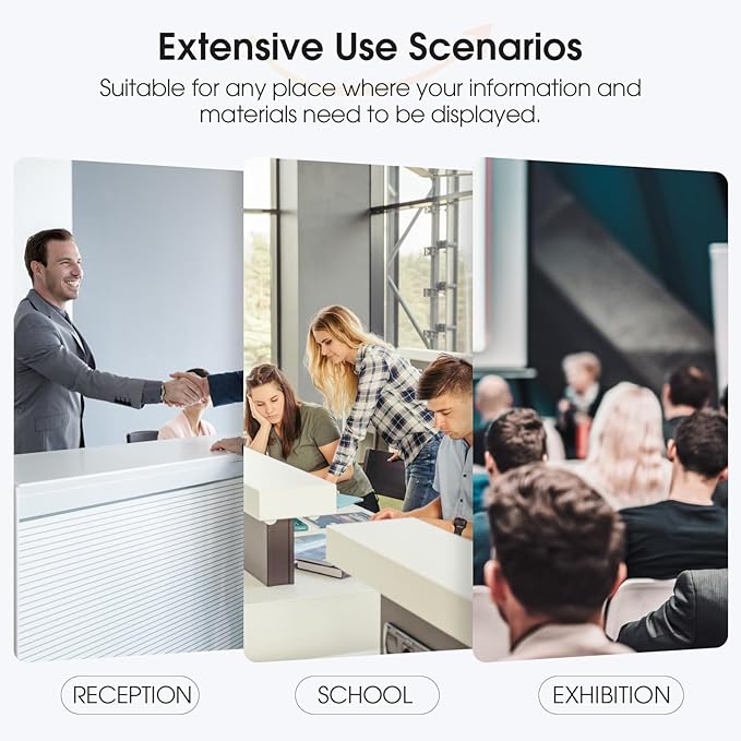 - SLANT BACK DESIGN NON-SLIP SLOT: The flyer holder can stand stably on your desktop with slanted back design. Non-slip slots make sure your brochures look good and never get curled or warped at the bottom. You can put brochures in and out conveniently.