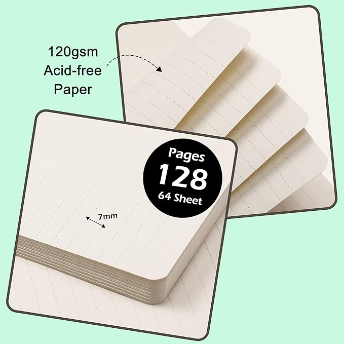 - PREMIUM THICK PAPER - 120 gsm lined paper, our notebook journal is made of high quality acid free paper to help prevent from damages of light and airs to keep notes on the pages clearly. There are 128 pages/64 sheets in this ruled journal, which provide you with plenty space for planning or scheduling.